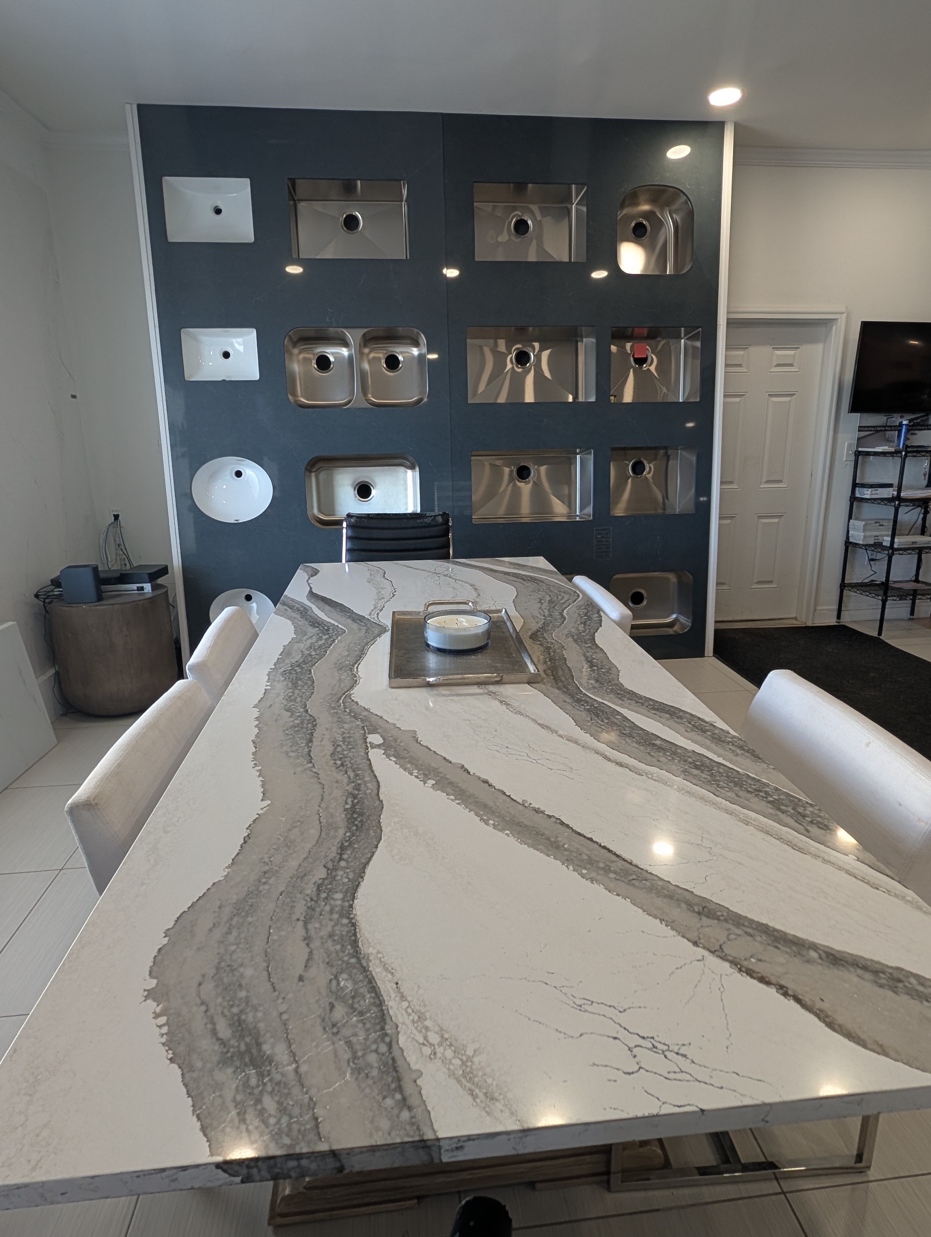Solid surface or man made surfaces differ considerably from natural stone as these materials do not have the same variations and unique markings that quarried materials will exhibit.